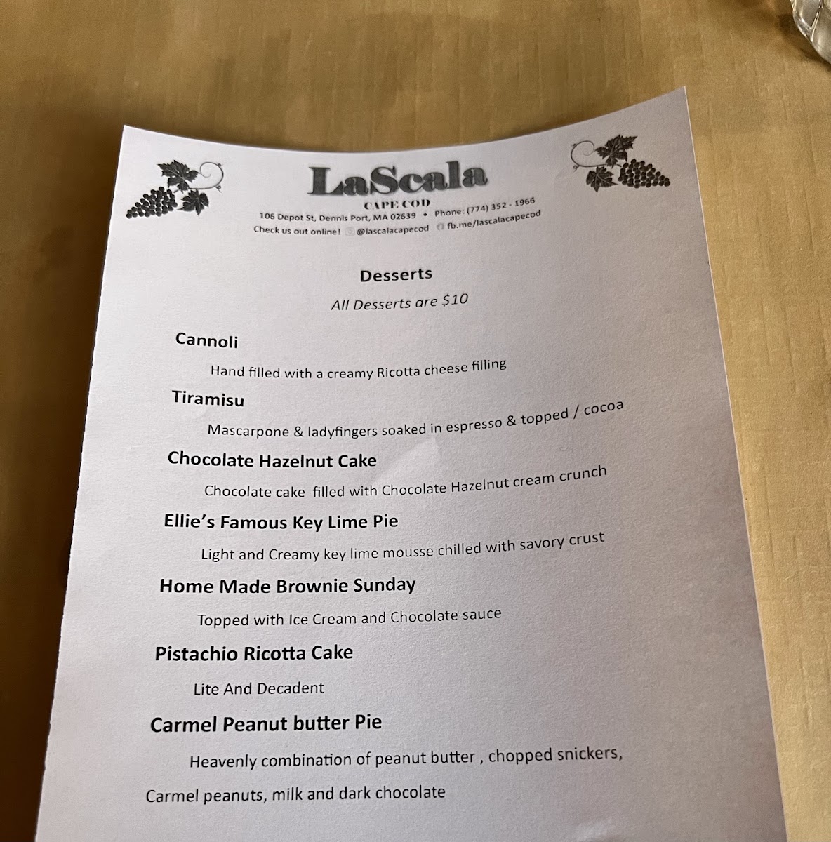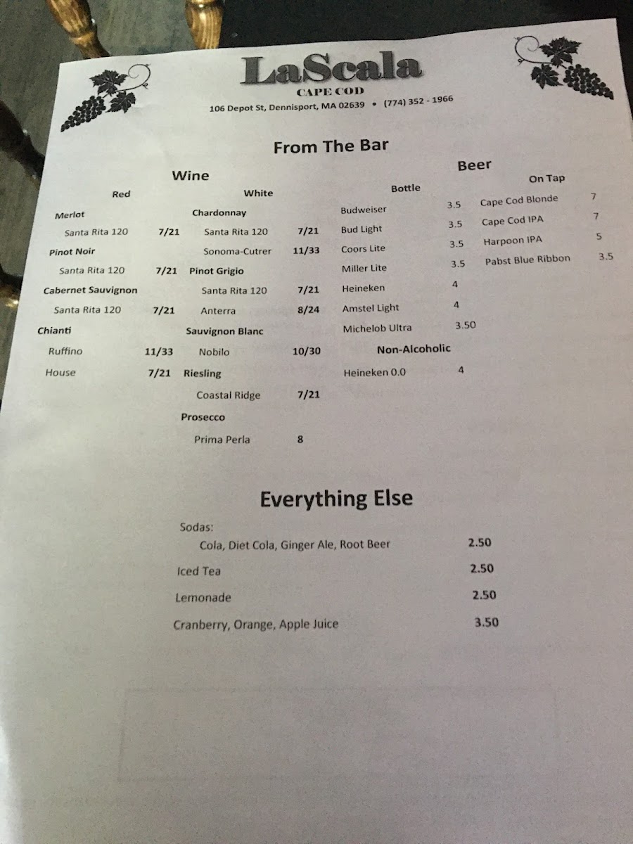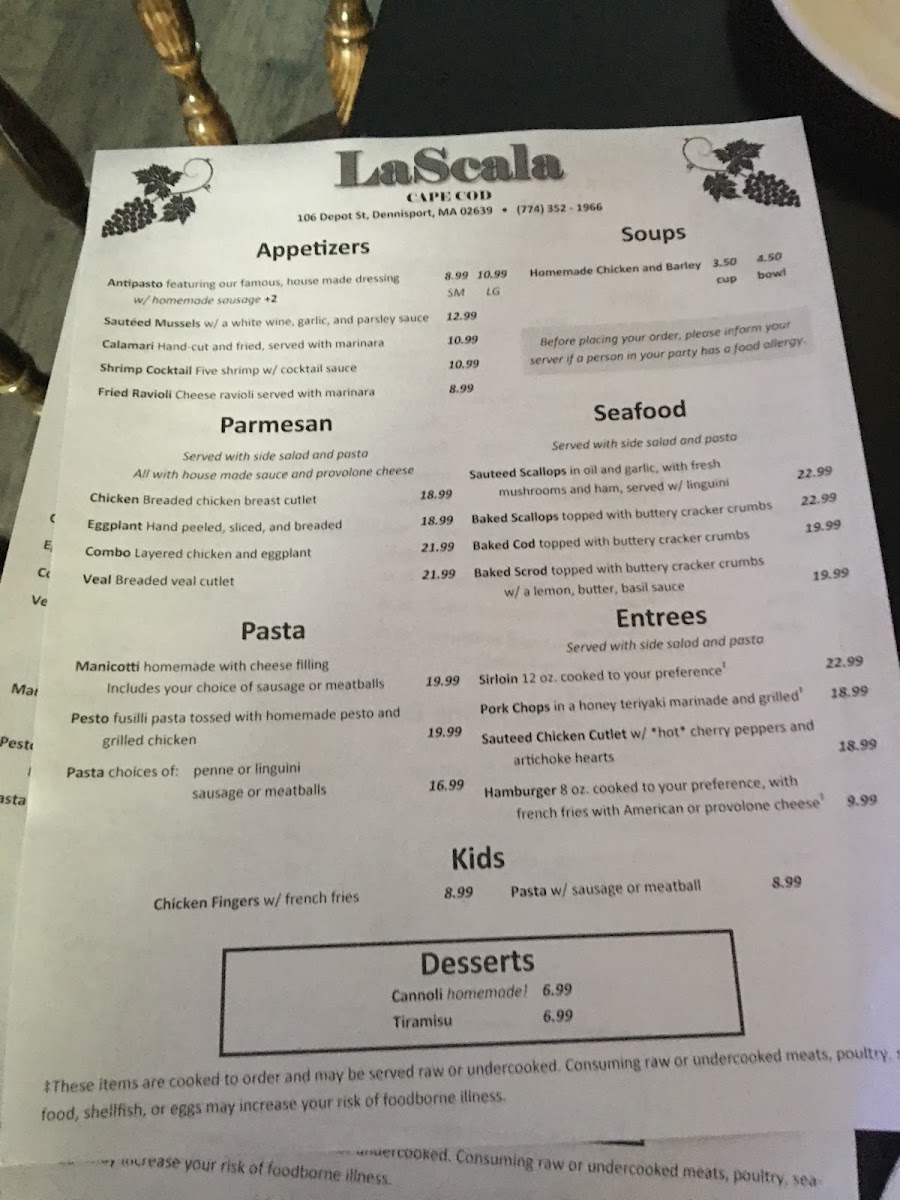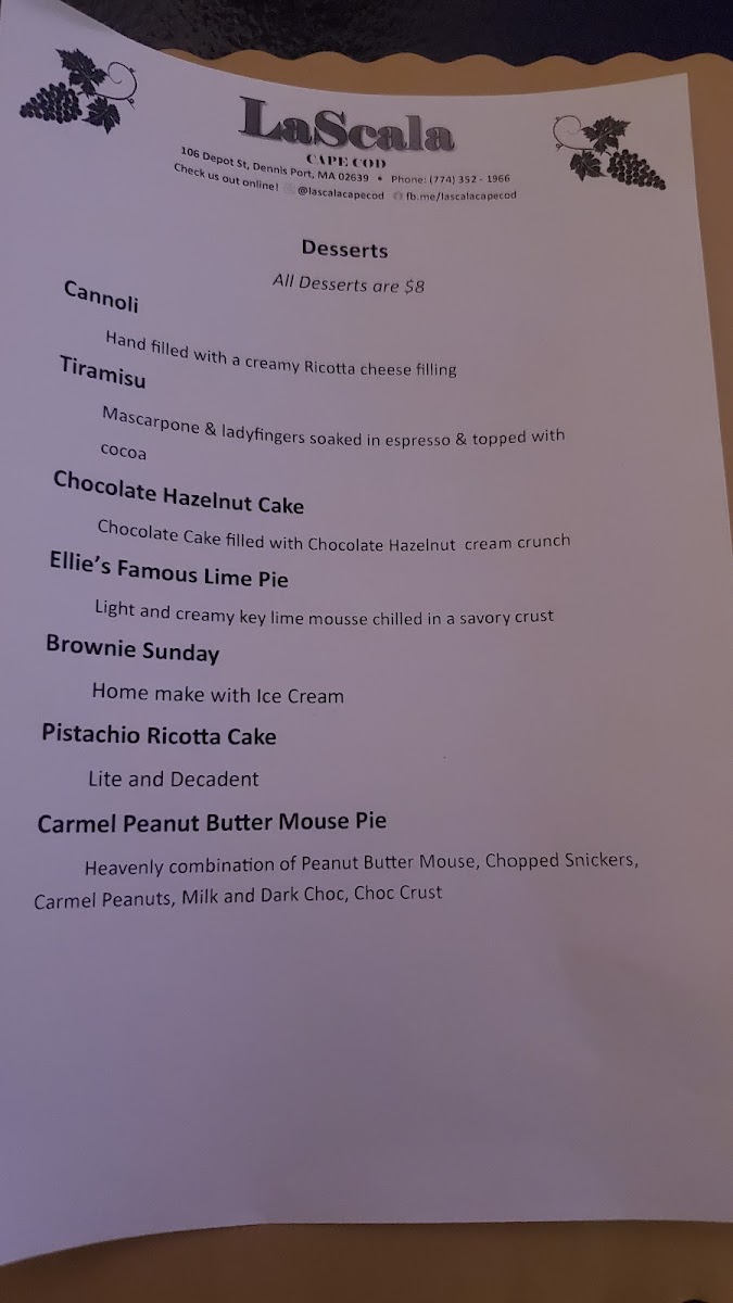 LaScala Cape Cod Menu